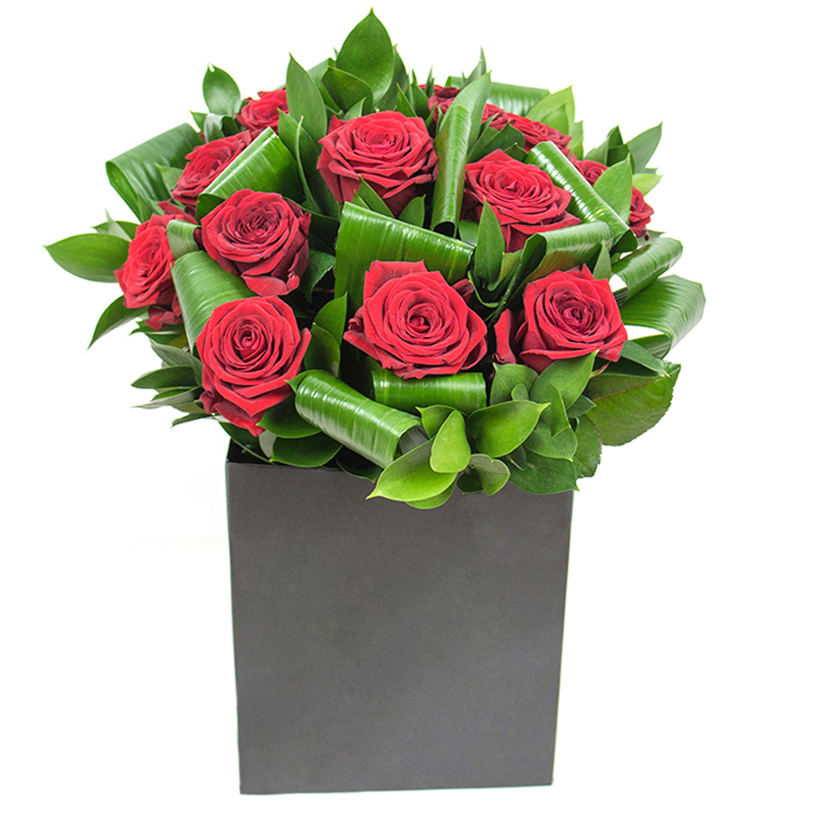 Introducing our Opulent Ruby Bloom Bouquet – an exquisite display of passion and elegance. This arrangement features rich red roses, enhanced by the graceful accents of aspidistra leaves and ruscus. Each bloom is carefully hand-picked to ensure unmatched freshness and quality, crafting a design that is both vibrant and refined.